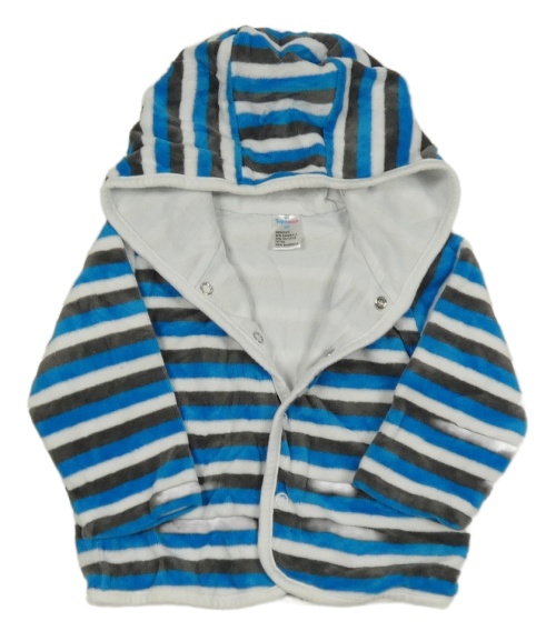 Modro-bílo-šedá pruhovaná sametová propínací podšitá mikina s kapucí Topomini