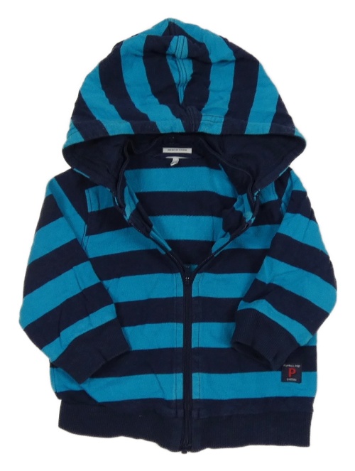 Modro-tmavomodrá pruhovaná propínací mikina s kapucí Polarn O. Pyret