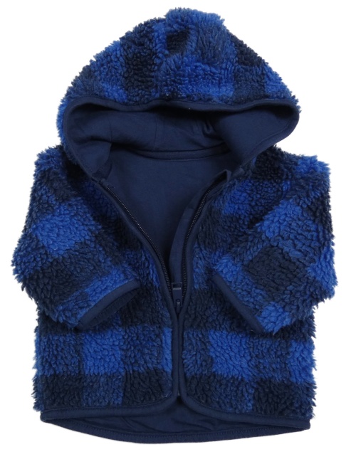 Tmavomodrá kostkovaná huňatá podšitá propínací mikina s kapucí M&S