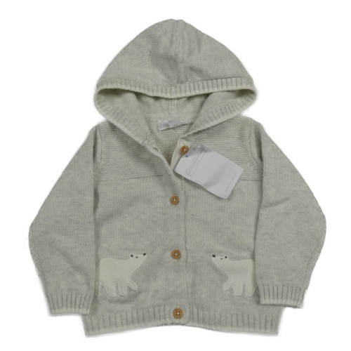 Nové - Světlešedý propínací svetr s medvědy a kapucí
