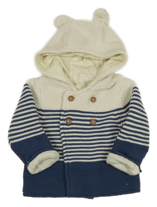 Bílo-tmavomodrý pruhovaný propínací podšitý svetr s kapucí M&S
