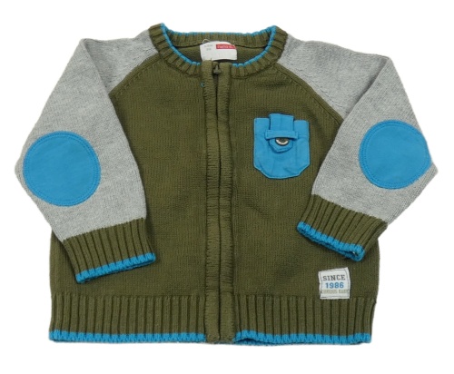 Khaki-šedý propínací svetr s nášivkou a motorkou name it.