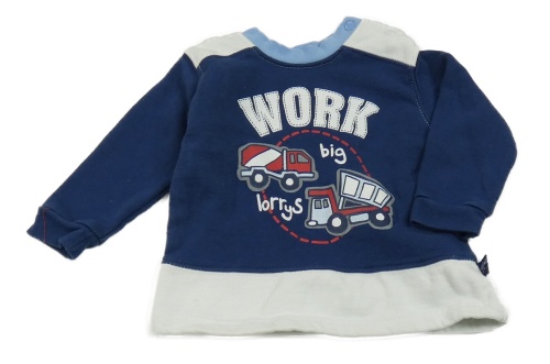 Tmavomodro-bílo-modrá mikina se stavebními stroji a nápisy