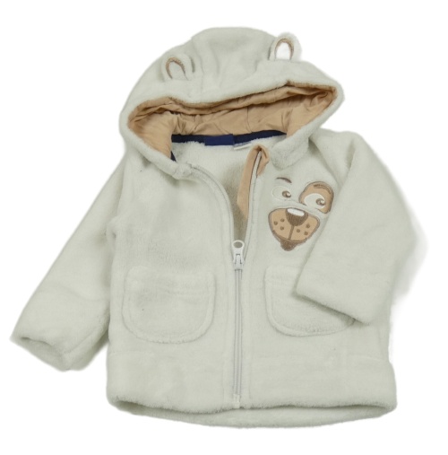Smetanová chlupatá propínací mikina se psem a kapucí Lupilu