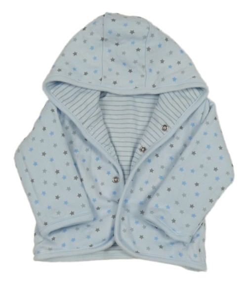 Světlemodrá lehce zateplená propínací mikina s hvězdičkami a kapucí