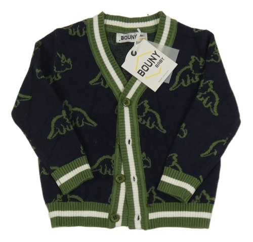 Nové - Tmavomodrý propínací svetr s dinosaury