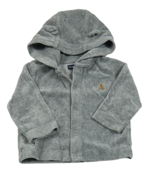 Tmavošedá melírovaná sametová propínací mikina s kapucí s oušky GAP