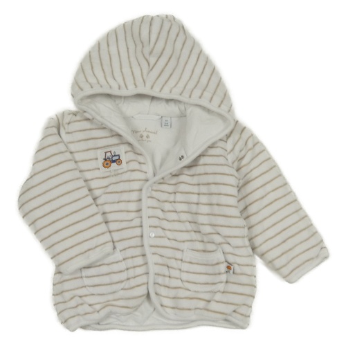 Bílo-béžová pruhovaná sametová zateplená mikina s nášivkou a kapucí Bob der Bär