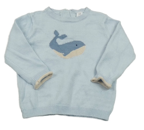 Světlemodrý svetr s velrybou