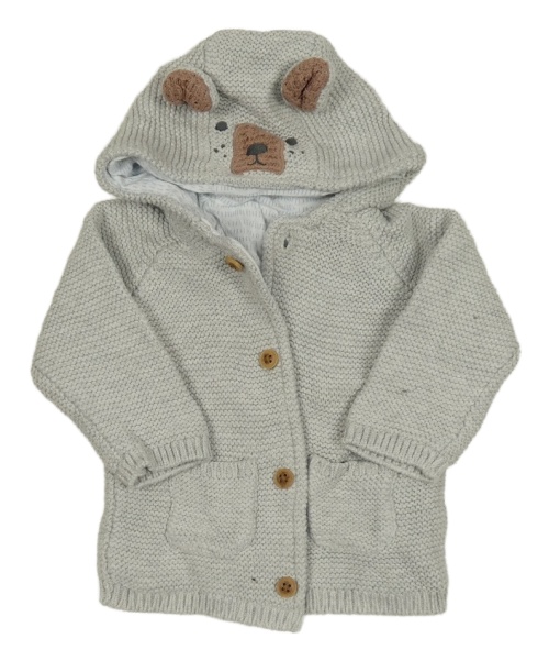 Šedý propínací podšitý svetr s kapucí - medvěd