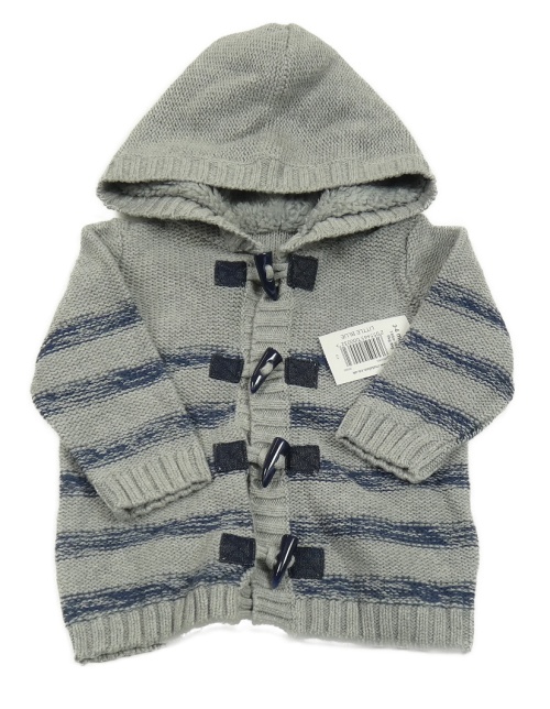 Nové - Šedo-tmavomodrý pruhovaný propínací svetr s kapucí Matalan