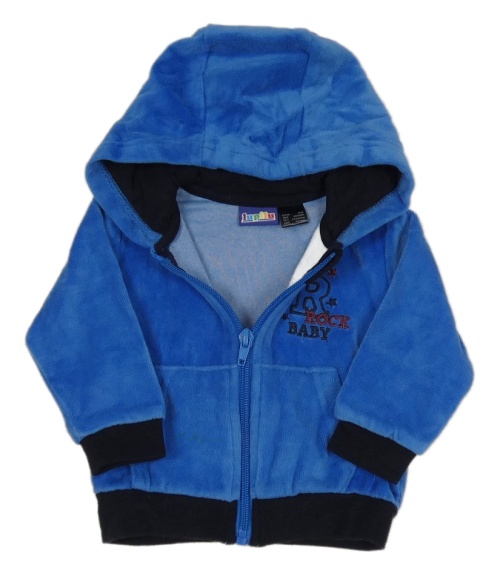 Tmavomodrá sametová propínací mikina s nápisem a kapucí Lupilu