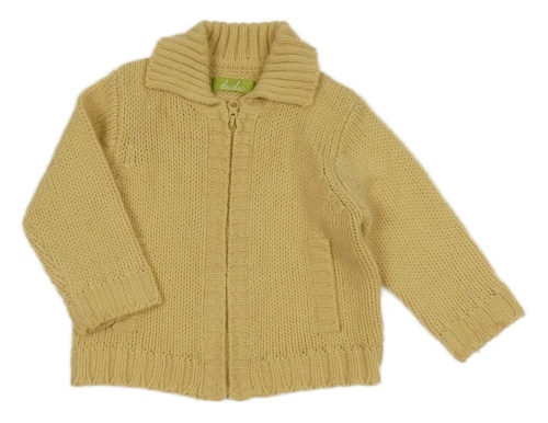 Světleokrový pletený propínací svetr s límečkem dudu