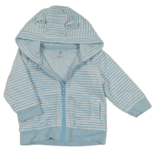 Modro-bílá pruhovaná sametová podšitá propínací mikina s kapucí