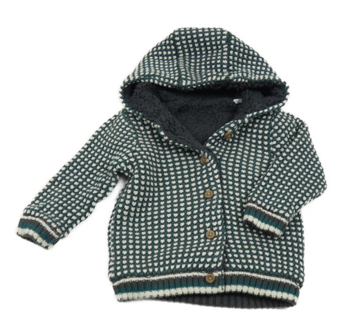 Bílo-šedo-petrolejový vzorovaný propínací zateplený svetr s kapucí M&S