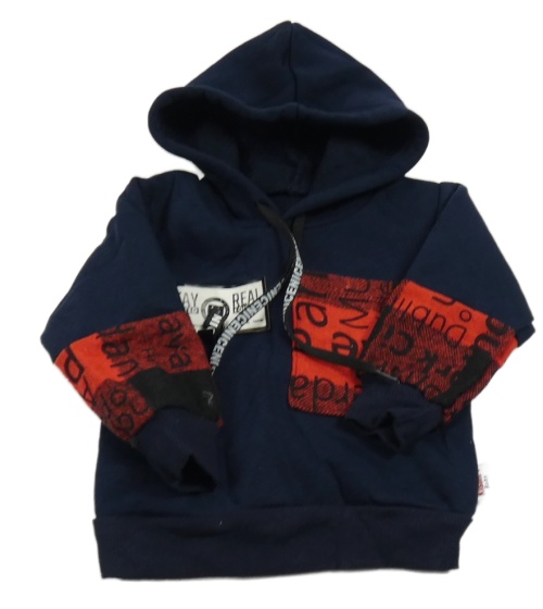 Tmavomodro-červená mikina s kapucí