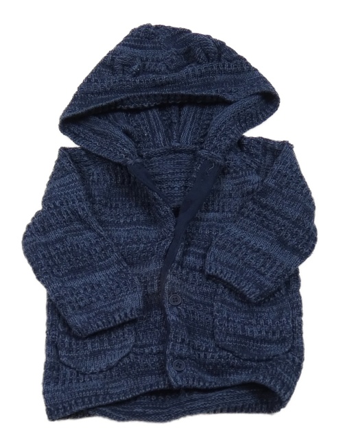Tmavomodro-modrý melírovaný propínací svetr s kapucí s oušky George