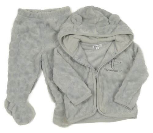 2set - Šedá chlupatá propínací mikina s letadlem a kapucí + polodupky