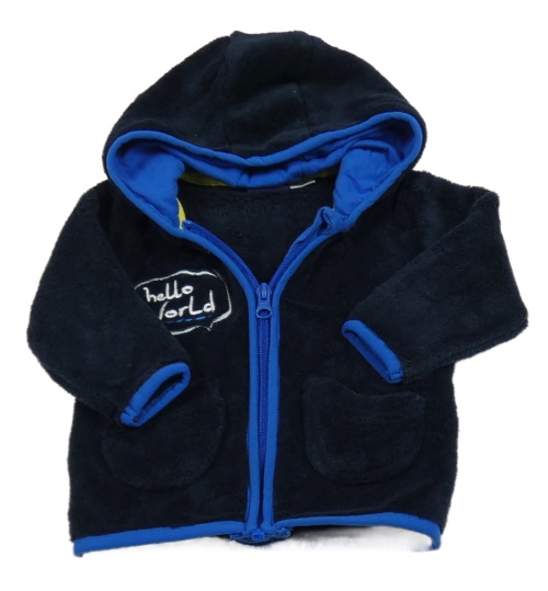 Tmavomodrá plyšová propínací mikina s výšivkou a kapucí Lupilu