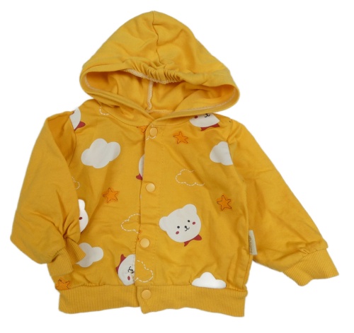 Hořčicová lehká propínací mikina s medvědy a kapucí