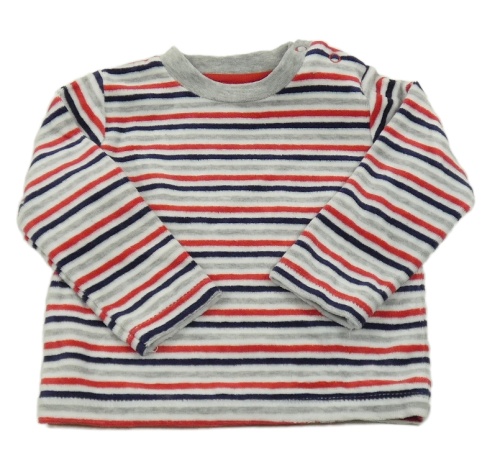 Bílo-šedo-červeno-tmavomodrá pruhovaná sametová mikina C&A