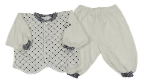 2Set - Bílo-tmavomodrá károvaná sametovo/saténová propínací mikina + tepláky s pruhy