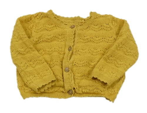 Hořčicový propínací svetr s perforovaným vzorem Tu