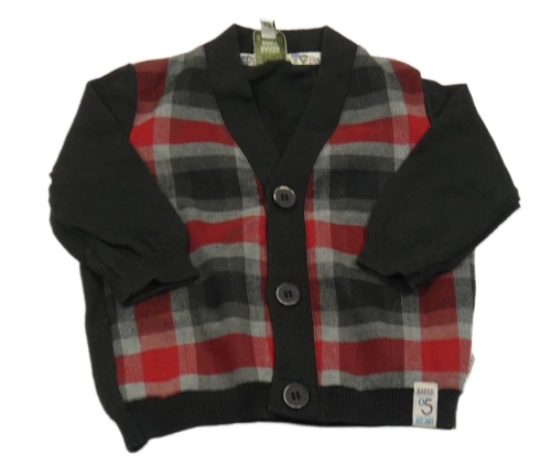 Černo-červeno-šedý kostkovaný propínací svetr BAKER BABY