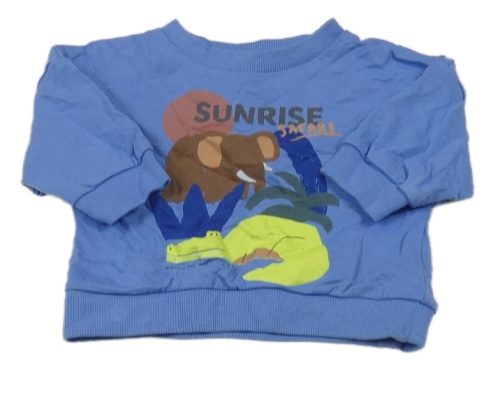 Modrá mikina se zvířátky a nápisem Next