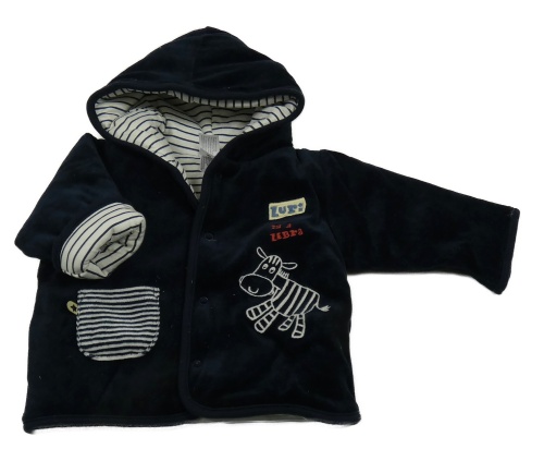 Tmavomodrá sametová zateplená propínací mikina se zebrou a kapucí C&A