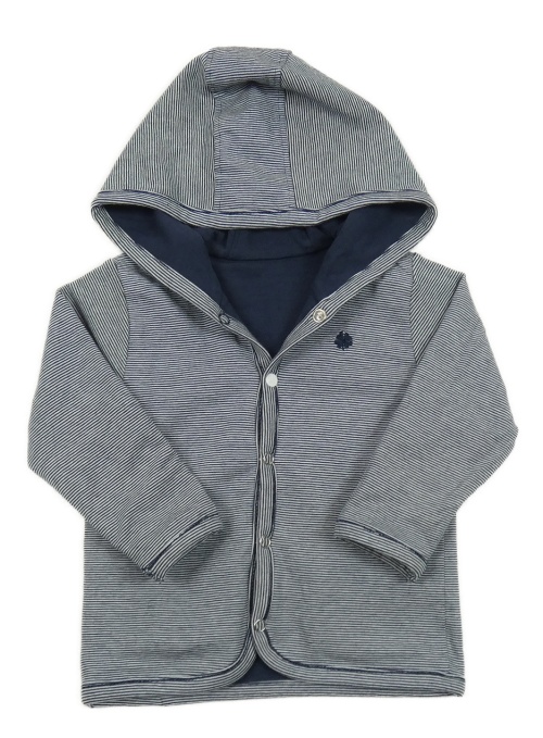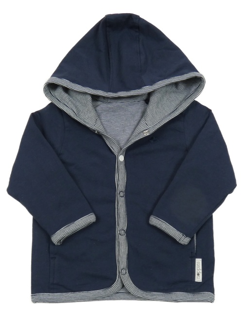 Tmavomodro-bílá pruhovaná propínací oboustranná mikina s kapucí