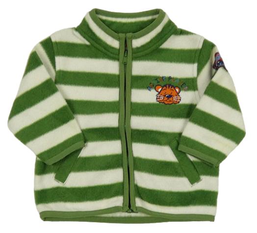 Zeleno-smetanová pruhovaná fleecová propínací mikina s tygrem
