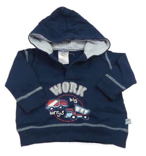 Tmavomodrá mikina se stavebními stroji a kapucí