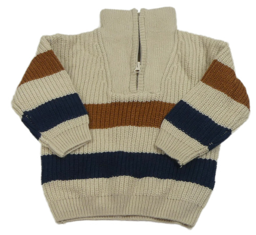 Smetanový svetr s hnědými a tmavomodrými pruhy Dopodopo