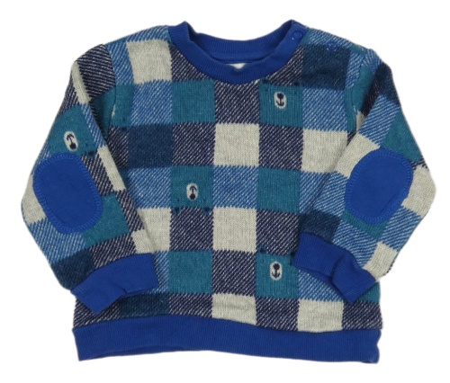 Modro-šedá kostkovaná pletená mikina s medvědy Nutmeg