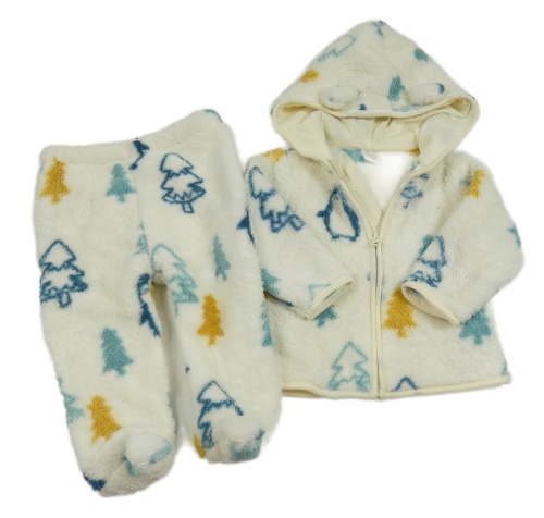 2set - Bílá huňatá propínací mikina se stromy a kapucí + huňaté polodupky LC Waikiki
