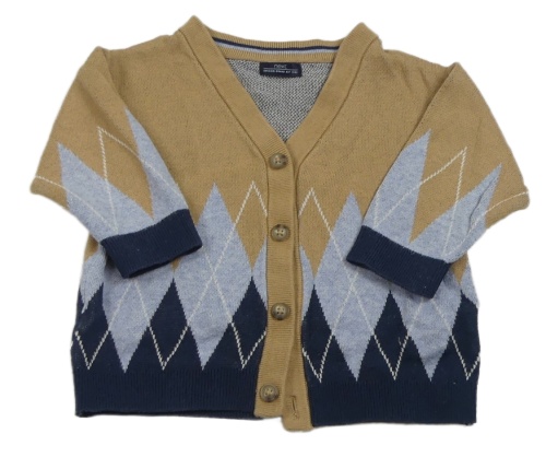 Hnědo-světlemodro-tmavomodrý propínací svetr s kárami Next