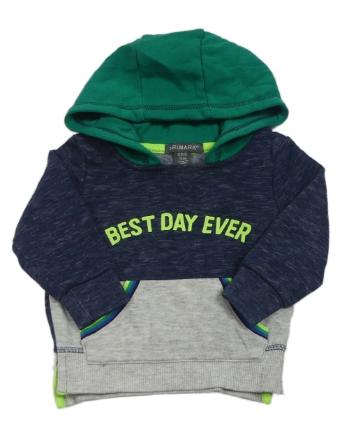 Tmavomodro-šedo-zelená mikina s nápisem a kapucí Primark