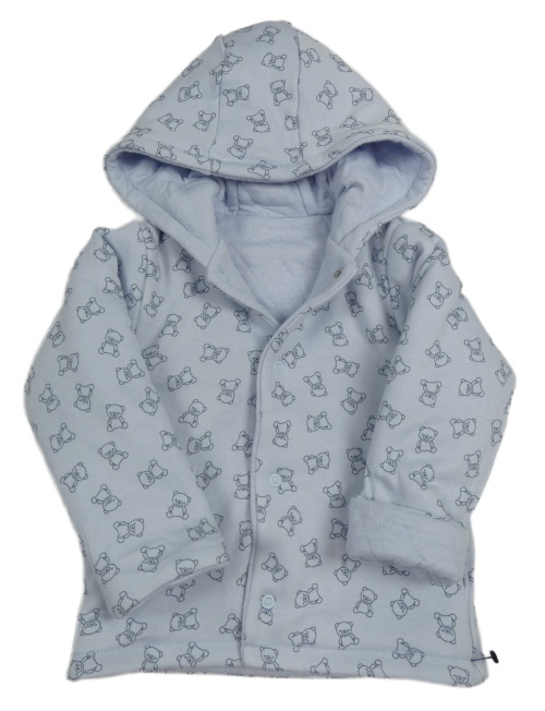 Světlemodrá propínací zateplená oboustranná mikina s medvídky a kapucí Nutmeg
