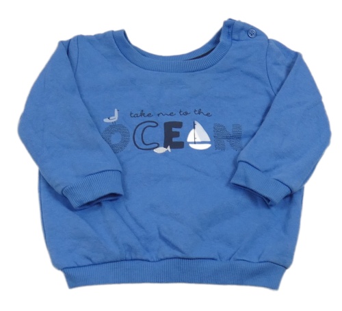 Modrá mikina s nápisy a rackem a lodičkou Matalan