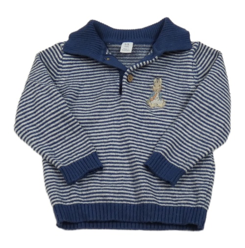 Tmavomodro-bílý pruhovaný úpletový svetr s králíčkem - Peter Rabbit a límečkem M&S