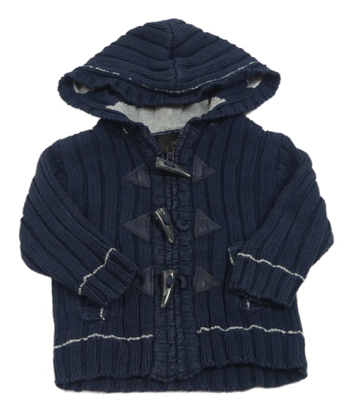 Tmavomodrý žebrovaný propínací svetr s kapucí Next