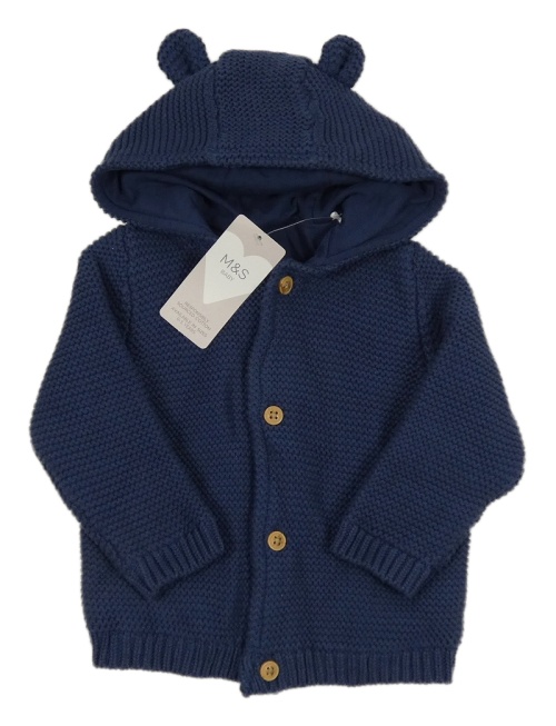 Nové - Tmavomodrý propínací podšitý svetr s kapucí M&S