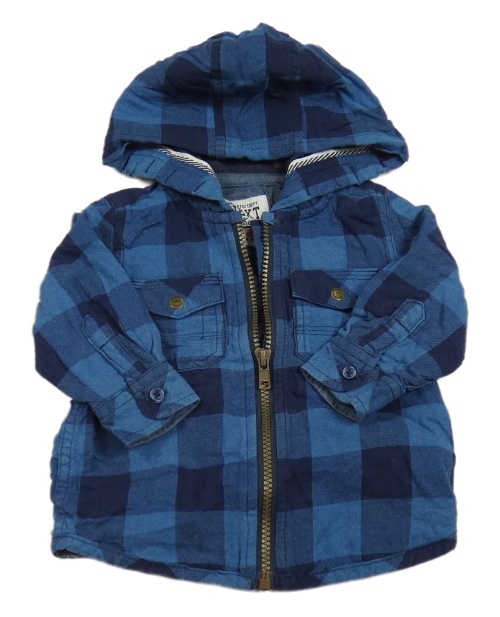 Tmavomodrá kostkovaná košilová podšitá propínací mikina s kapucí Next