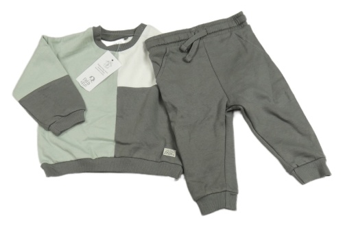 Nové - šedé tepláky + šedo-bílo-zelená mikina F&F