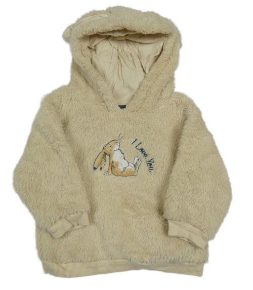 Béžová chlupatá mikina s králíčkem a kapucí Tu