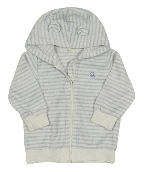 Bílo-světlemodrá pruhovaná sametová propínací mikina s kapucí Benetton