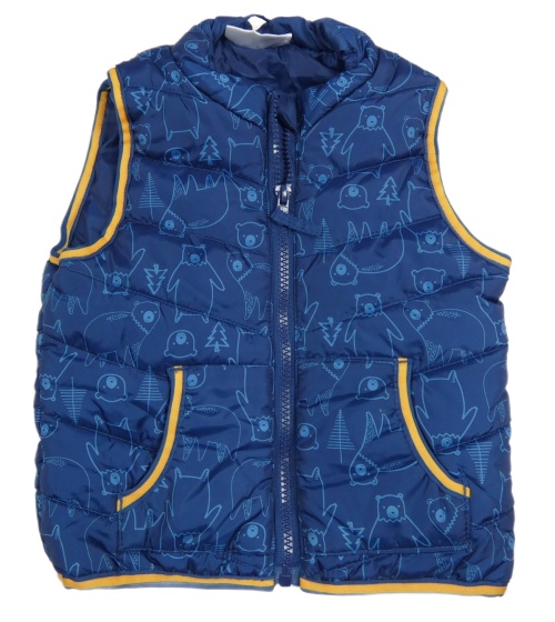 Tmavomodrá šusťáková zateplená vesta s medvědy Ergee