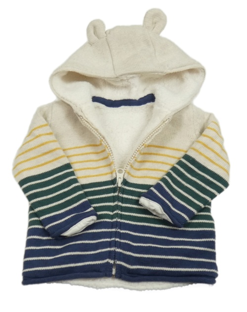 Béžovo-žluto-tmavozelený propínací zateplený svetr s kapucí M&S