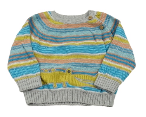 Šedo-modro-okrový pruhovaný svetr s krokodýlem Nutmeg